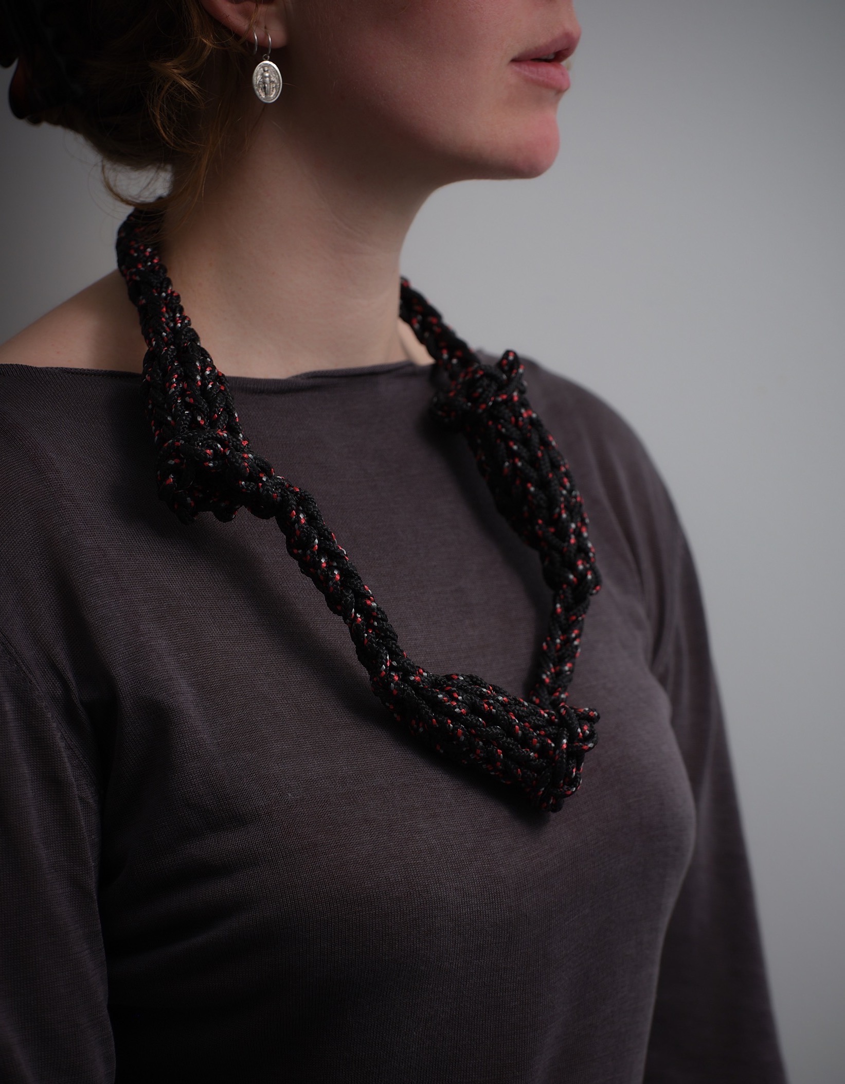 The conception of this rope-work series originally came about as an exploration of the ‘critique of preciousness’ a central theme in contemporary jewellery where it is the concept and making that determines the value of the object over a material value.