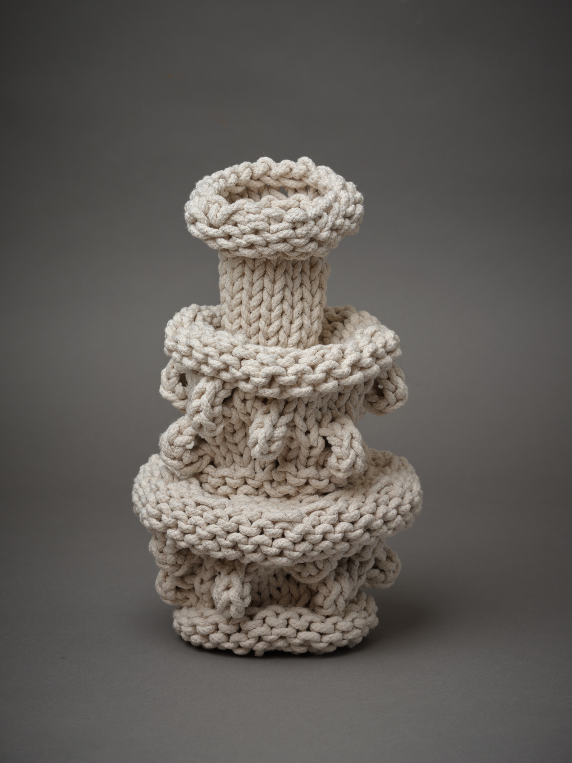 More recently I have been thinking about my rope works like ceramics. Instead of working with the materiality of clay to express form, I work with rope and the inherent properties of this material. I do not use any chemical bonds. Friction, tension and gravity determine the shapes, along with personal experience and tacit understanding.