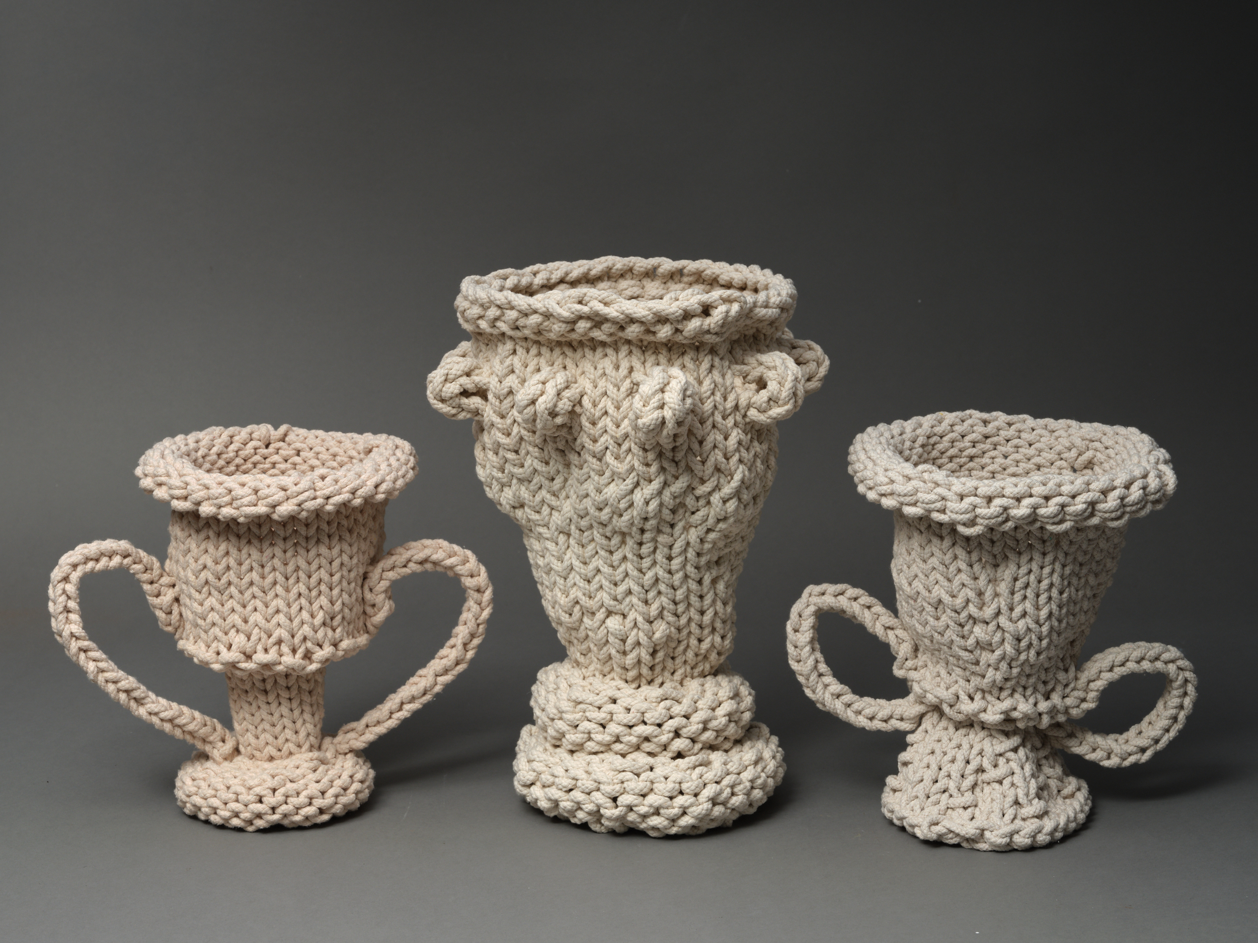 These vessels are intended to reflect a simple and elegant use of rope and rhythmic forms that allude to the processes of making and cyclical time.
