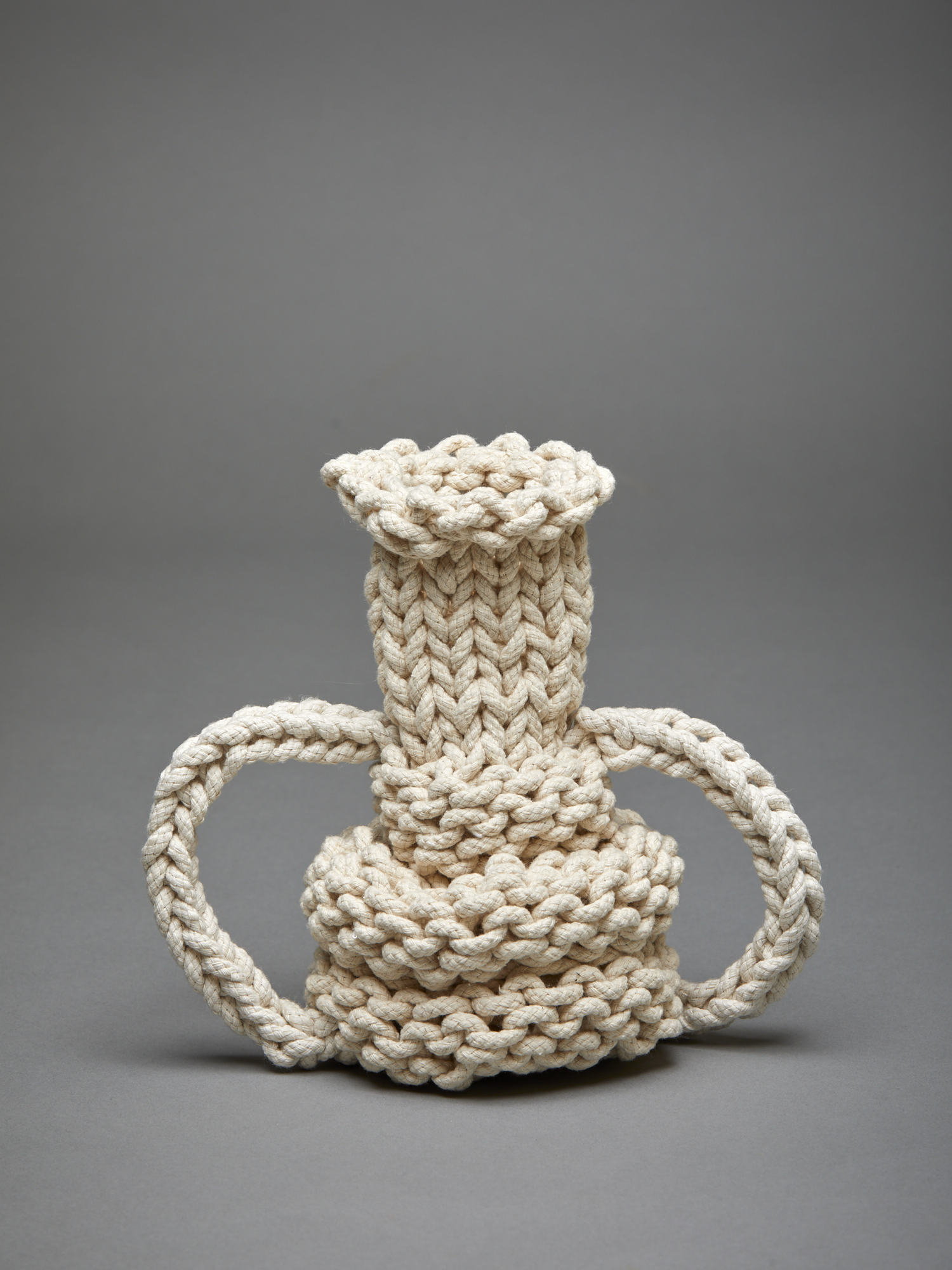 While making these soft vessels I adhere to a series of rules; one being that the form must take shape in one direction as one continuous line. No chemical bonds, only friction is used to transform the rope into an object.